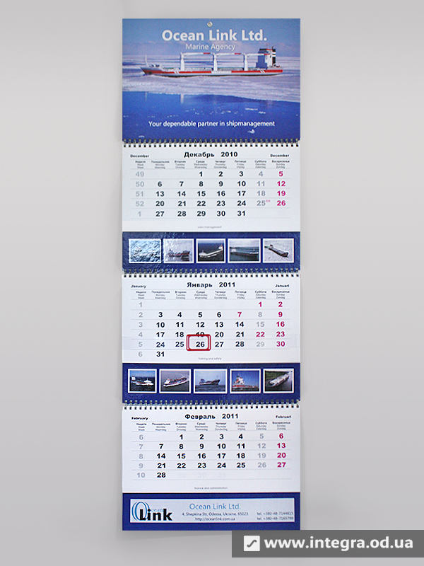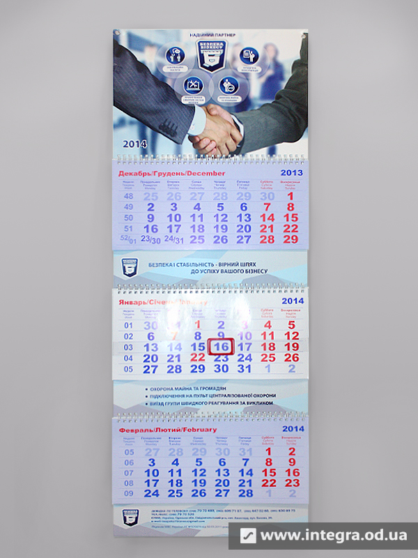 Компанія «ІНТЕГРА» здійснює повний комплекс послуг з виробництва календарів будь-яких типів та форм: дизайн календаря, друк календарів, друкарська обробка, складання календарів, пакування тощо. Як Ви переконалися, календарів існує безліч, для того, щоб дізнатися детальніше про те, як замовити календарі на 2025 рік або замовити дизайн календарів, зв'яжіться, будь ласка, з нами будь-яким зручним для Вас способом через сторінку "Контакти" або залиште заявку в розділ «Замовити дзвінок».
